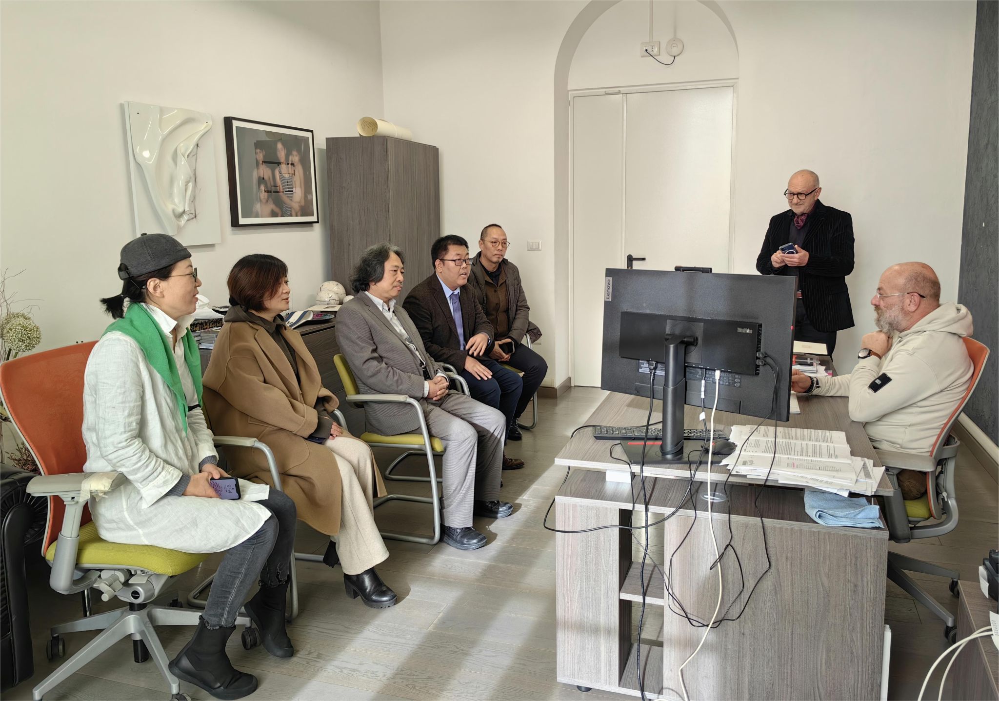 天美代表团访问意大利那不勒斯美术学院期间,与该校主席罗西塔·马凯塞(Rosita Marchese)、校长朱塞佩·贾艾达(Giuseppe Gaeta)、副校长阿德里亚娜·德马内斯(Adriana de Manes)进行了会晤。双方回顾了两校的合作,对彼此的专业建设进行了深入的介绍和探讨,举行了校际合作协议续签仪式。那不勒斯美术学院是best365官网近年来重要的合作伙伴,两校在许多领域开展了深层次合作,在外专引智、互派交换生、硕士双学位项目等方面有广泛的人员交流形式。未来,两校将继续加强深度的教学科研合作,增强人员交流与合作。会谈后,贾广健院长走访了best365官网在意大利交流学生的住宿基地,与学生们进行了亲切的会谈,了解学生在海外的生活学习情况,代表学校鼓励天美学子珍惜海外学习经历,通过自身的努力实现艺术之路上阶段性的目标,并且叮嘱同学们保持良好的身心状态,注意留学安全。