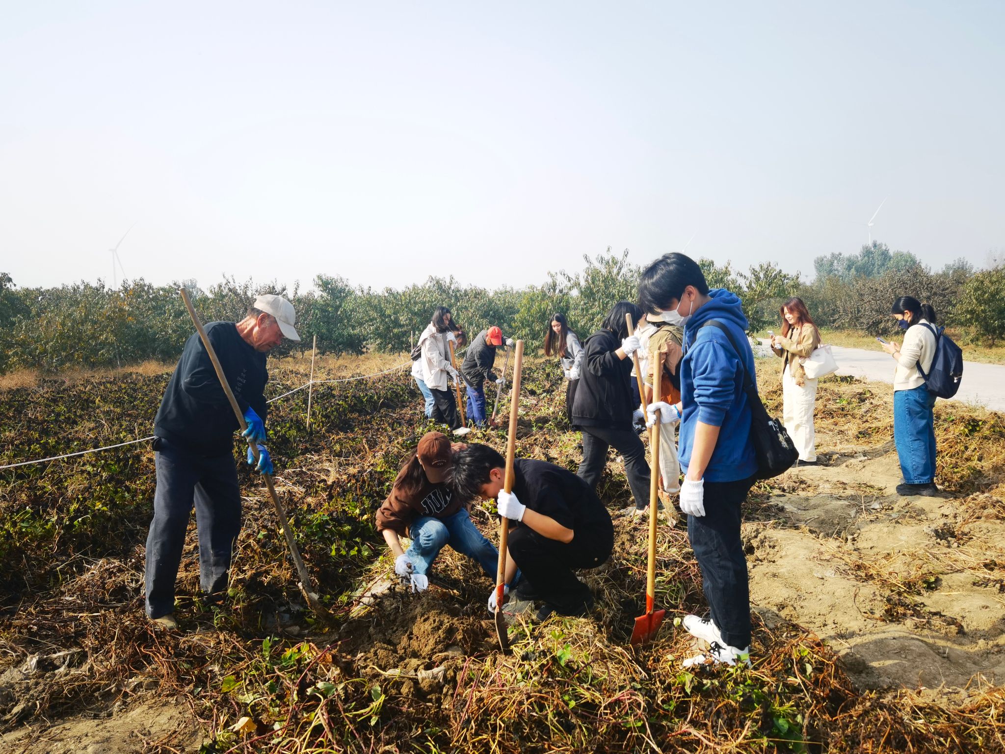 秋风习习,百果飘香。在“学农导师”的带领下,学生们走进田间地头,了解中国传统的农耕机具,体验采摘乐趣。在阳关明媚的果园,学生们动手摘下熟透的桃子,感受其沉甸甸的重量,品味其鲜甜多汁的口感;在广袤的农田中,学生们挥动锄头,找寻藏于泥土之下的红薯,体验收获所带来的喜悦之情;在郁郁葱葱的甘蔗林中,学习使用镰刀,砍伐挺拔高大的甘蔗,感受劳动过程中的艰辛与收获的甜蜜。