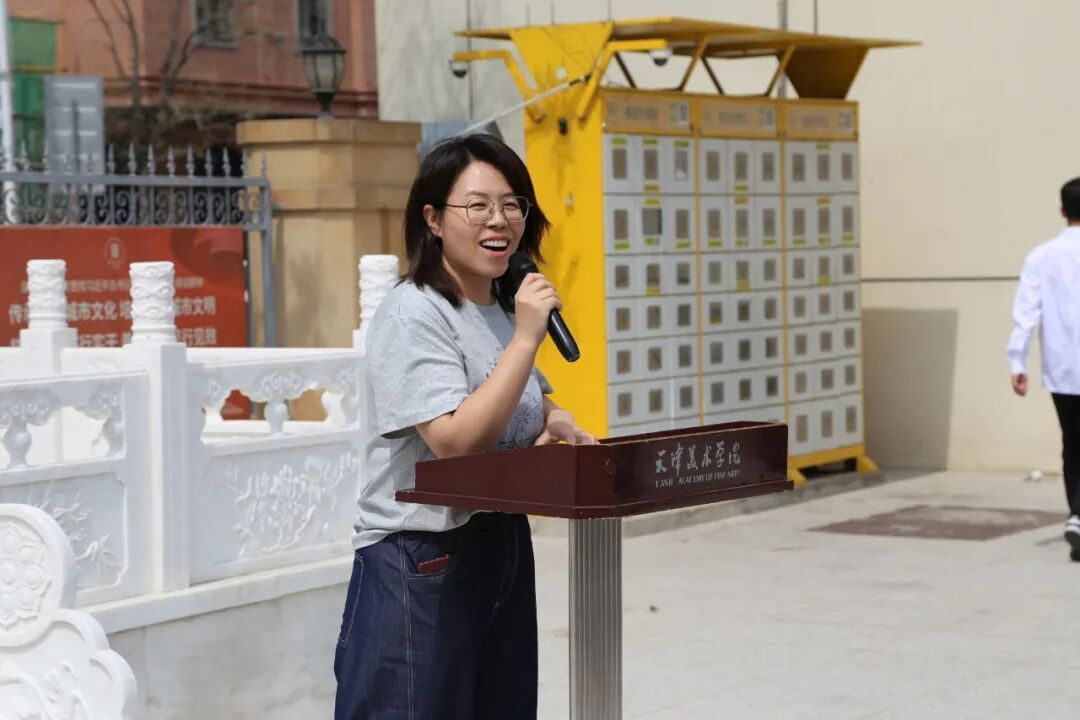 校党委学工部部长、校团委书记史雅宁老师以《执青春画笔 绘祖国需要》为题为全体师生讲授了一堂生动的思政课。她通过一个个鲜活的案例,介绍了天美学子如何将艺术创作与社会需求相结合,并呼吁同学们要将专业所长转化为服务祖国的实际行动,做心怀家国的艺术深耕者、文化根脉的守护者、服务社会的艺术传播者。从乡村墙绘到非遗传承,从社区美育到西部支教,志愿者们扎根基层,助力教育发展和文化传承。这些故事不仅让在场师生深受启发,更激发了大家用艺术服务社会、奉献祖国的决心和热情。