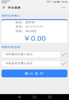 5、勾选需要交纳费用——确认支付——输入密码——缴费成功
